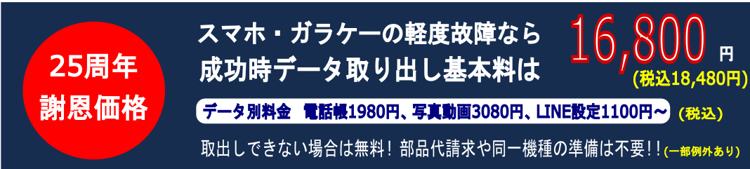 故障品からのデータ取出しは早ければ早いほど成功率が高くなります。逆に着手が遅れたためデータ復旧できないことも多くあるかと思います。また修理に出した後、キャンセルし2〜3日後に戻してもらい当店に持ち込みされる方も時々おりますが、不思議と多くがリセットされておりデータは何もありませんでした???